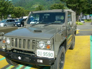 | 某自衛隊の車両。ベースはパジェロで乗り心地良さそう。エアコンもガンガンに効かして走ってんでしょうね。 | ||