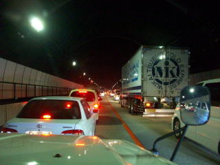 | 埼玉を放浪してから関東脱出です。道中、首都高のランプを間違えて渋滞にはまってしまいました。渋滞の原因はちょっとした道路工事でした。23:30ごろに東名に乗る事ができました。 |